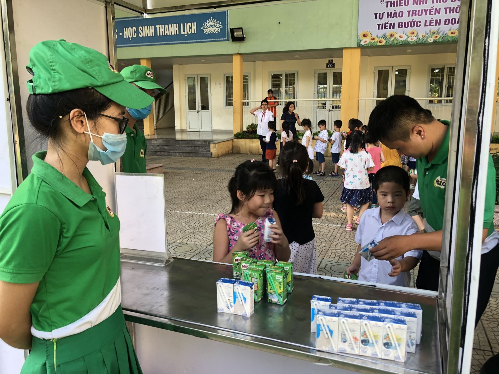 Với mong muốn nâng cao tầm vóc, sức khỏe cho người Việt Nam và khuyến khích tạo thói quen uống sữa hàng ngày, công ty Nestle Việt Nam đã đến và trao miễn phí những hộp sữa đầy yêu thương cho hơn 1500 học sinh toàn trường.