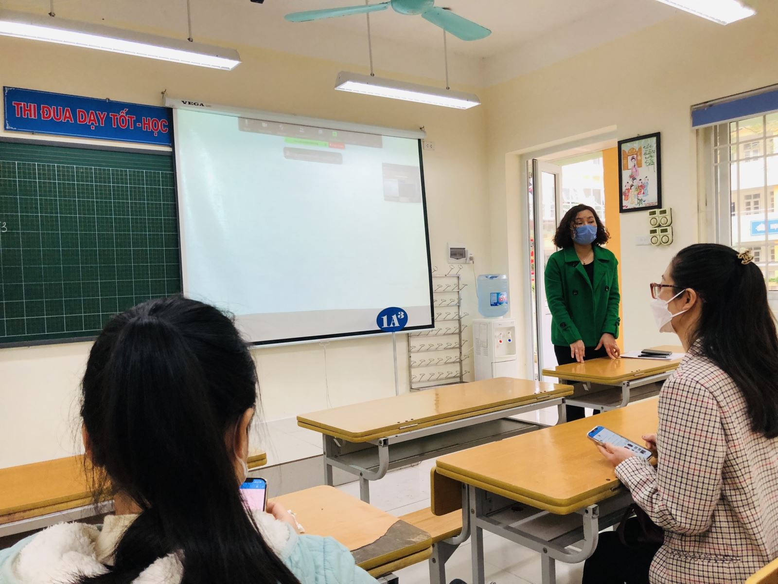 Ngay đầu năm học, nhà trường đã trang bị cho 100% các lớp camera kết nối với máy tính tại các lớp. Hệ thống mạng Internet được bảo trì đáp ứng việc ứng dụng CNTT trong dạy học. Với trang thiết bị đồng bộ đó, các giáo viên thuận lợi trong việc ứng dụng CNTT thực hiện giảng dạy trực tiếp trên lớp đồng thời có thể truyền trực tiếp đầy đủ các hoạt động giảng dạy trên lớp cho học sinh học trực tuyến tại nhà qua zoom. Học sinh học trực tuyến tại nhà cùng lúc có thể xem nội dung bài giảng điện tử đồng thời xem các hoạt động của giáo viên ở lớp trên màn hình zoom. Qua đó thầy cô và các học sinh đang học trực tiếp vẫn có thể tương tác với học sinh học trực tuyến tại nhà.